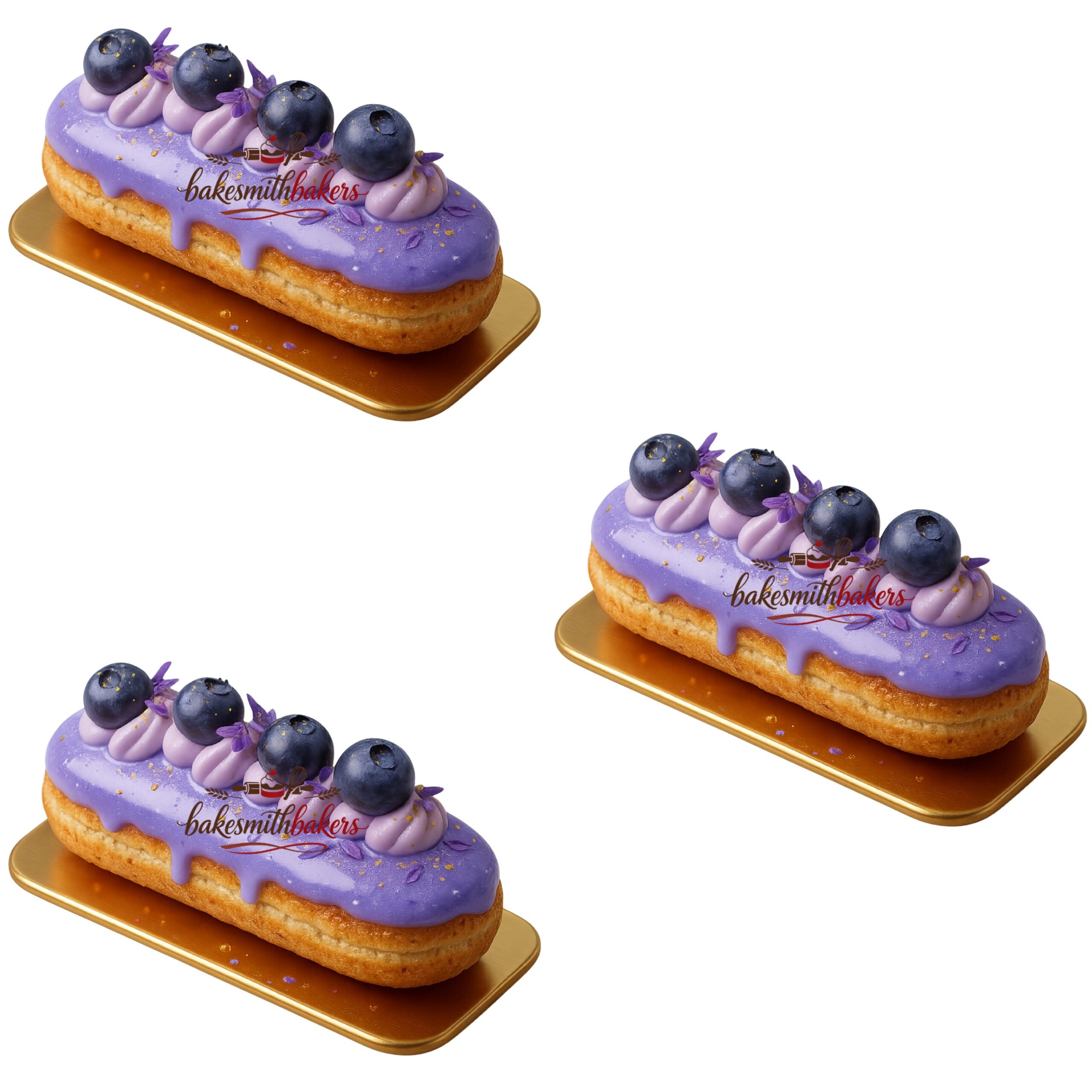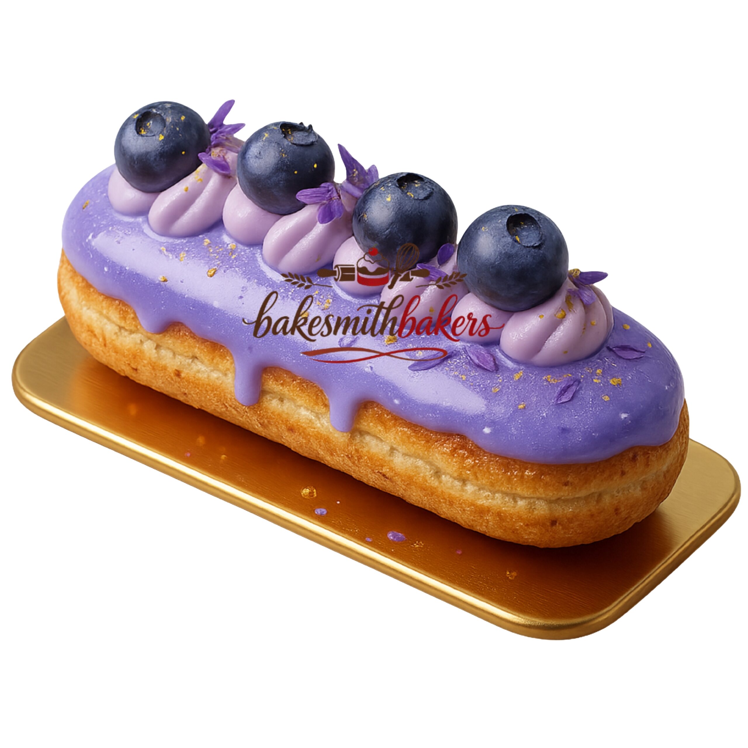 Blueberry Lavender Éclair is a classic French choux pastry that is light and airy on the inside. It has a smooth filling of Chantilly cream and lavender-infused cream, while a blueberry coulis in the center balances the flavor.